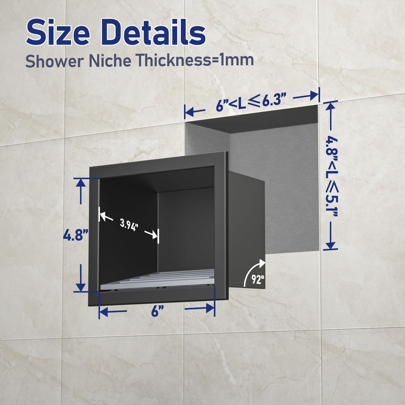 - High quality: Made of AISI 304 stainless steel, Bernkot black shower niche is resistant to rust, corrosion and stains, making it an excellent choice for wet and humid environments such as bathrooms. It can resist moisture and maintain its structural integrity over time.