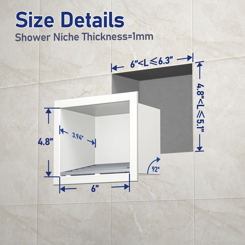 - 【No Tile Needed Shower Niche】Our shower niche doesn't require the attachment of tiles inside, which saves both time and money. "No tile needed" black shower niches typically possess smooth and non-porous surfaces, facilitating easy cleaning and maintenance.