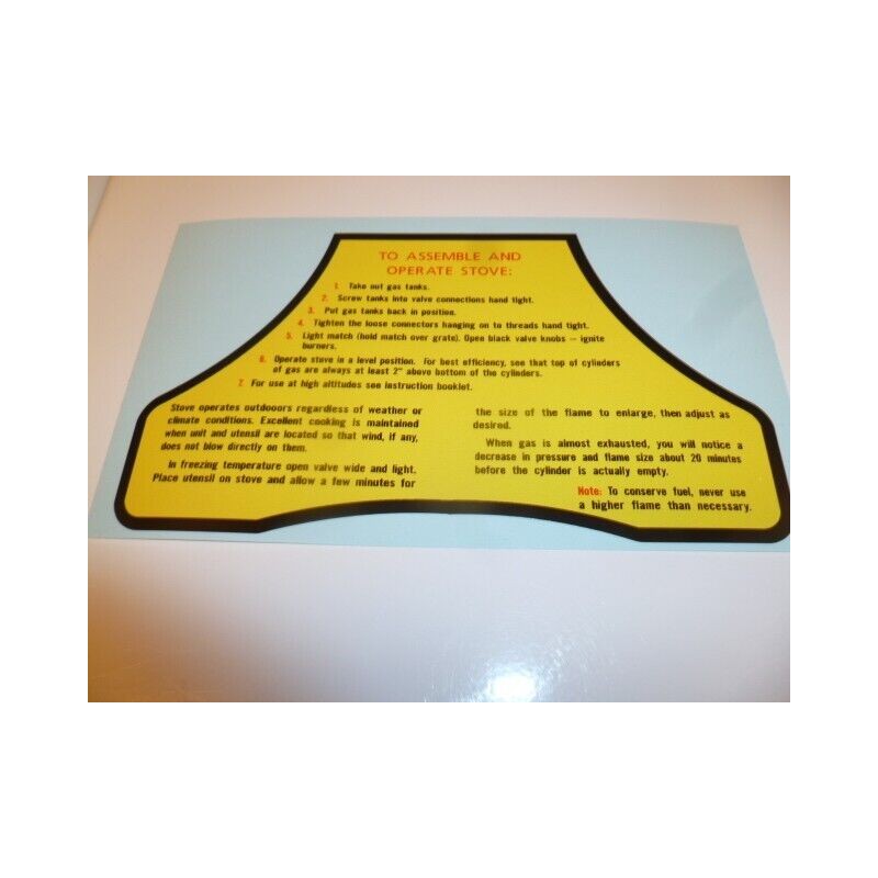 These decal / stickers fit the vintage Bernz-0-Matic 2 burner propane gas camp stove. They are for the top and bottom. They are new and made of vinyl. They are both the same size 3 3/8" X 6 1/4. These are made in the U.S. A. These are replacement decal / stickers for the Bernz-0-Matic 2 burner stove.