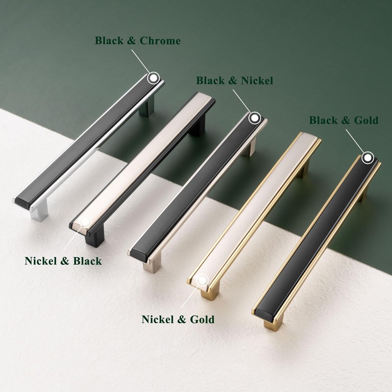 - [Versatile Application]: These black and nickel cabinet handles add an elegant and stylish touch to your home, and pair perfectly with kitchen cabinets, bedroom dressers, bathroom vanities, drawers, cupboards, wardrobes, closets, nightstands, lockers, chests, and more.