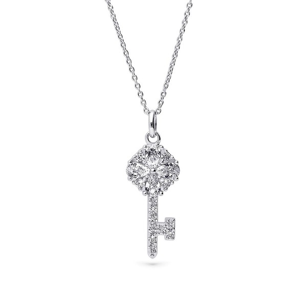 BERRICLE Sterling Silver Key Pendant Necklace for Women, Cubic Zirconia CZ 16 inch