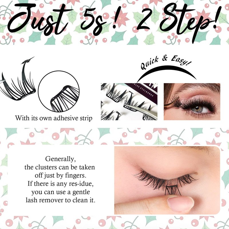 - Easy To Use, Beginners Friendly: The no glue pre-bonded clusters lashes offer extra-strong hold, They are user-friendly for both beginners and professional makeup artists. Give you voluminous lashes in a wink.