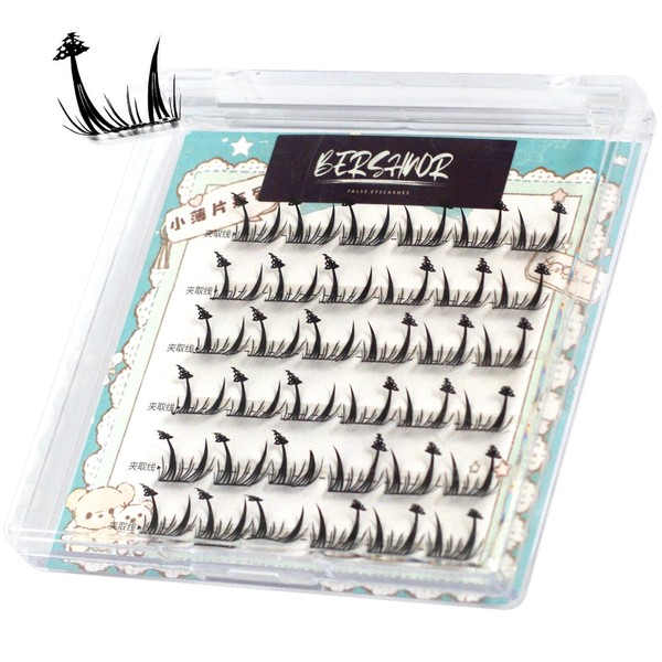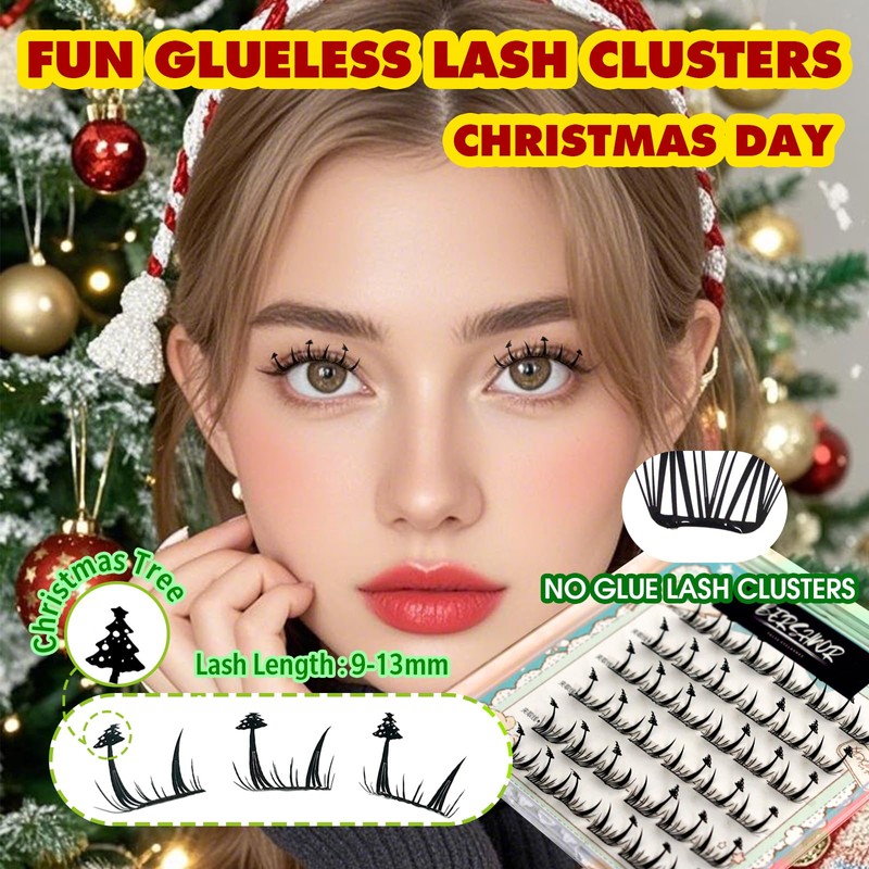 - Tree-Shaped Preglued Lash Clusters: Get into the holiday spirit with these playful lashes! The tiny tree pieces twinkle like ornaments, adding a touch of whimsy to your eyes