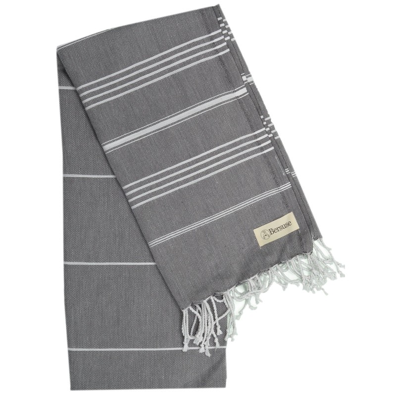 Bersuse Beach Towels Peshtemal Turkish Towels Anatolia Collection Premium Turkish Beach Towel, 100% Cotton, Large, Quick-Dry, Sand-Free, Lightweight - 37x70 Inches, Anthracite (Set of 3)