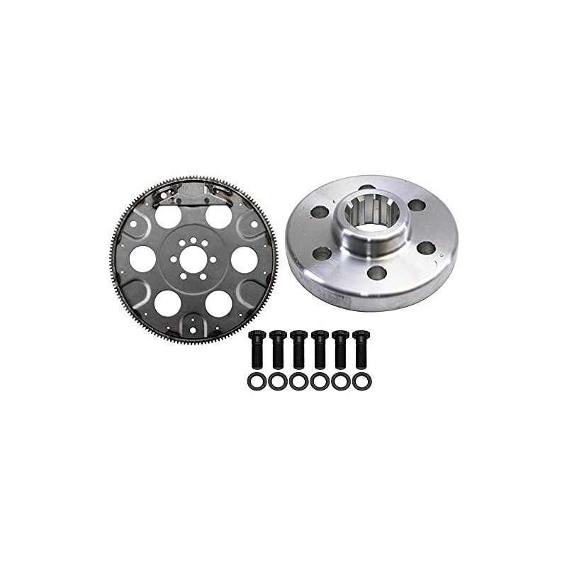Drive flange for Brinn transmissions. These non-SFI rated Small Block Compatible with Chevy flexplates are suggested whenever installing a new engine or transmission. This 153-tooth flexplate fits SBC crate engines with a 1-piece rear main seal. Single bolt pattern. 12-13/16" O.D. 3 on 10-3/4" bolt pattern for the torque converter. Kit Includes: (1) Brinn 73056 Transmission Small Block Compatible with Chevy Steel Drive Flange, 1 Piece (1) 1986-1997 Compatible with Chevy 153 Tooth Flexplate 1-PC Rear Main, Ext. Balance (1) ARP 230-7306 Brinn Flywheel Bolts