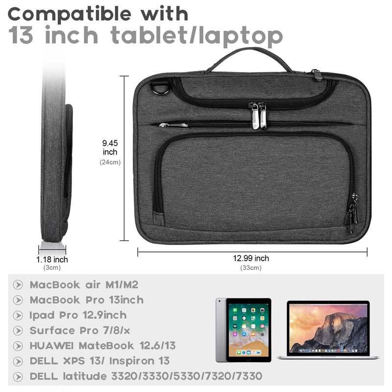 - ✔️COMPATIBILITY: The laptop bag is designed for most 13-13.3 inch laptop and tablets.Compatible with MacBook air M1/M2, MacBook Pro 13inch, Ipad Pro 12.9 inch, Surface Pro 7/8/x, Surface Laptop Go, HUAWEI MateBook 12.6/13, HUAWEI MatePad Pro 12.6