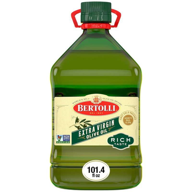 - One 101.4 fl oz bulk refill size bottle of Bertolli Non-GMO Extra Virgin Olive Oil, Rich Taste