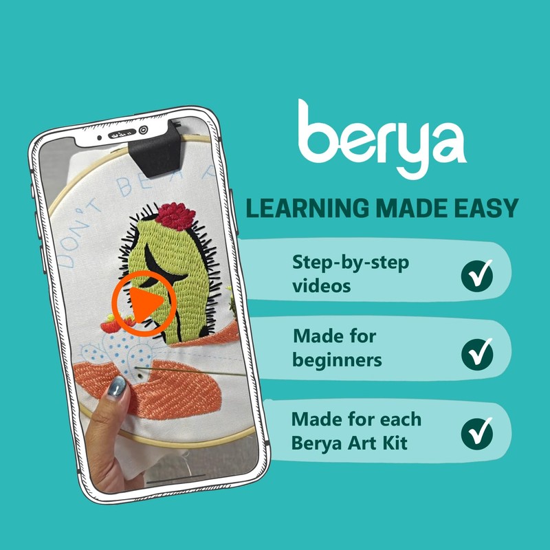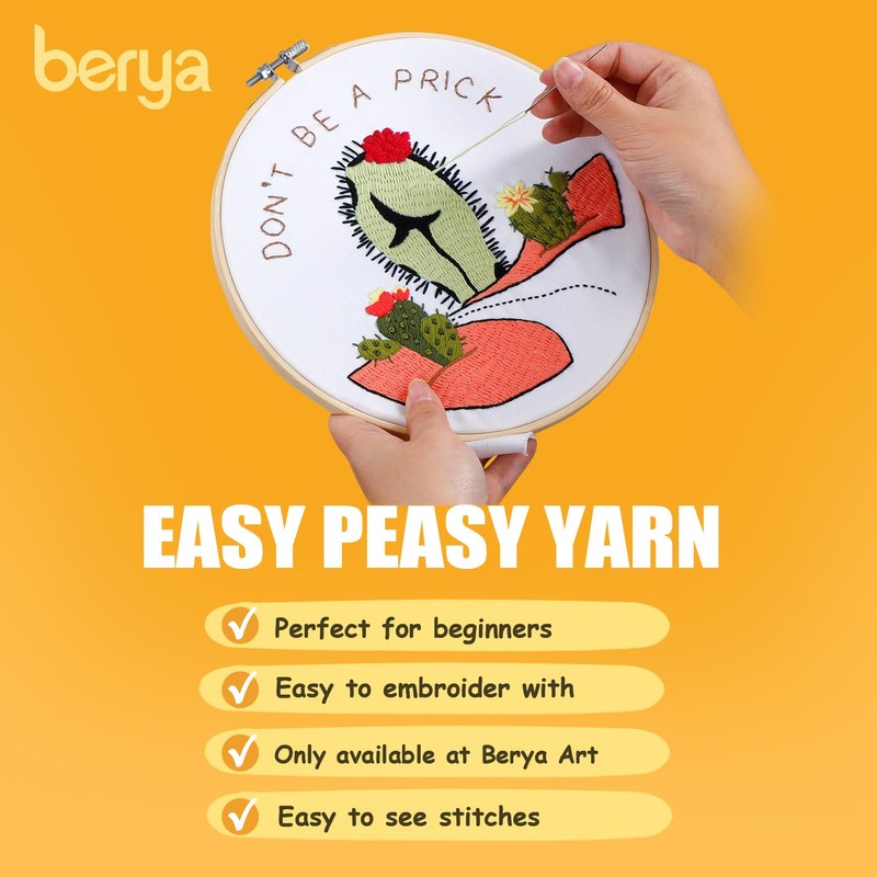 BERYA Funny Cactus Embroidery Kit with Embroidery Hoop, Easy Embroidery Kit for Beginners, Include Instructions, Display Stand, Printed Cloth, Threads and Tools - with Video Tutorials (BEC005)