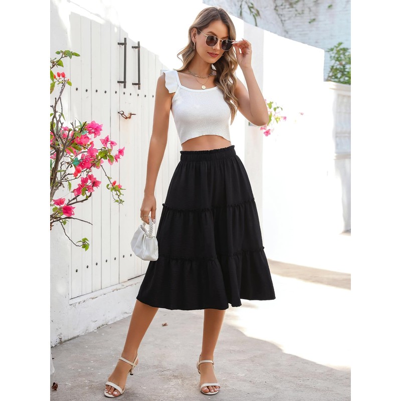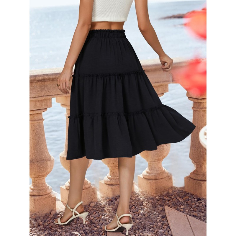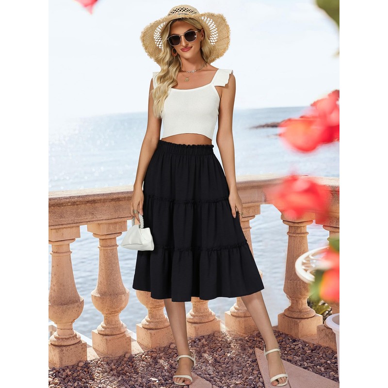 - Feature: Womens A Line Ruffle Skirts, 3 Layers of Tiered Skirt, Women Beach Fashion Skirts for Women, The Flowy Skirt Has Two Pockets on Both Side, High Waisted Boho Skirt with Mid Calf Midi Length Womens Skirts