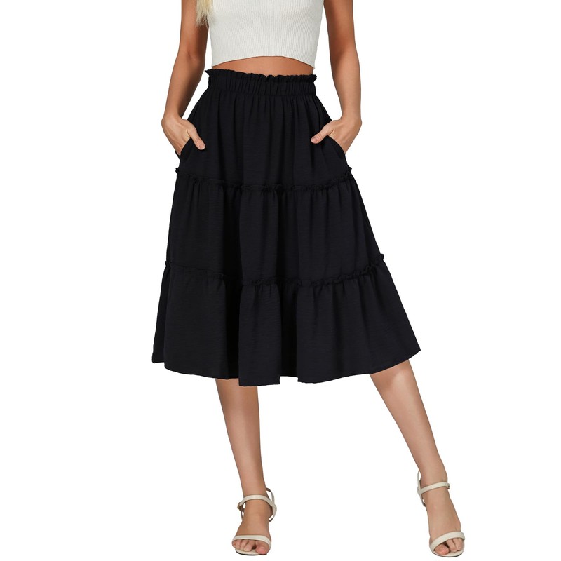 - Fabric: The Ruffle Midi Skirts with Pockets for Women 2025 is Made From Light Weight Woven Fabric Which is Soft, Breathable and Comfortable. But It is Not See Through at All. And The Fabric Has No Stretch, Cute and Flowy Black Skirt