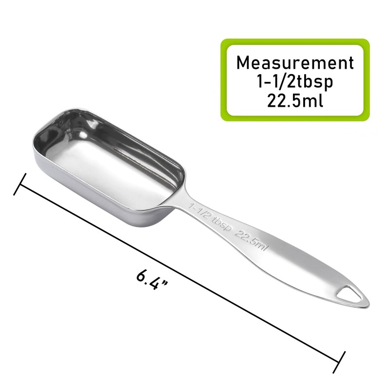 - Precise Scales: The measuring spoon is so precise that it can be the perfect partner for your cooking. The teaspoon has a clear scale on the handle in US and metric.⬤1-1/2 tbsp | 22.5 ml