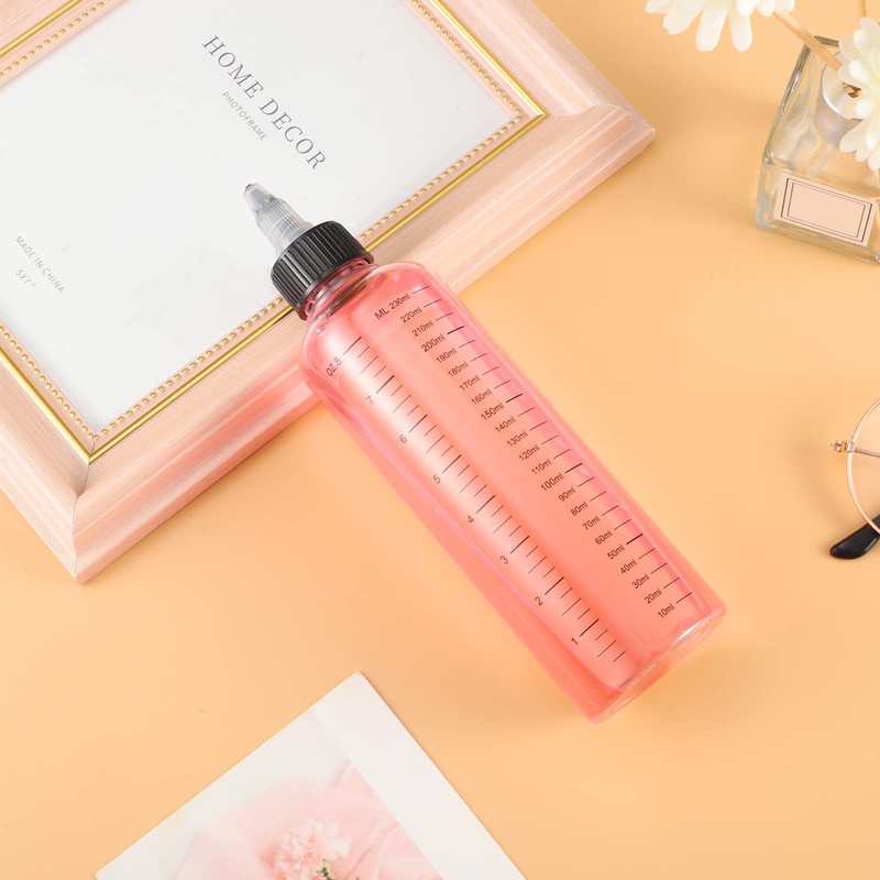 - Easy to Squeeze and MixWith large 8.5oz/250ml storage capacity, this hair dye bottle has soft body to easily compress and squeeze out the liquid. You can easily refill the liquid, perfect for mixing the oils for hair and distributing product around scalp.