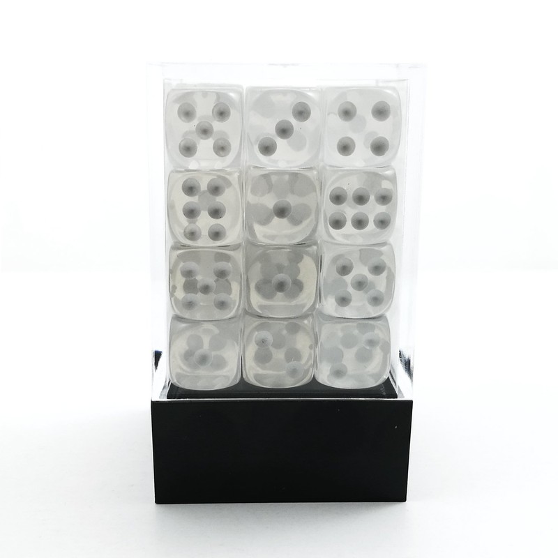 - Translucent White with Pips - 12mm Six Sided Die (36) Block of Dice; 6 sided dice pipped