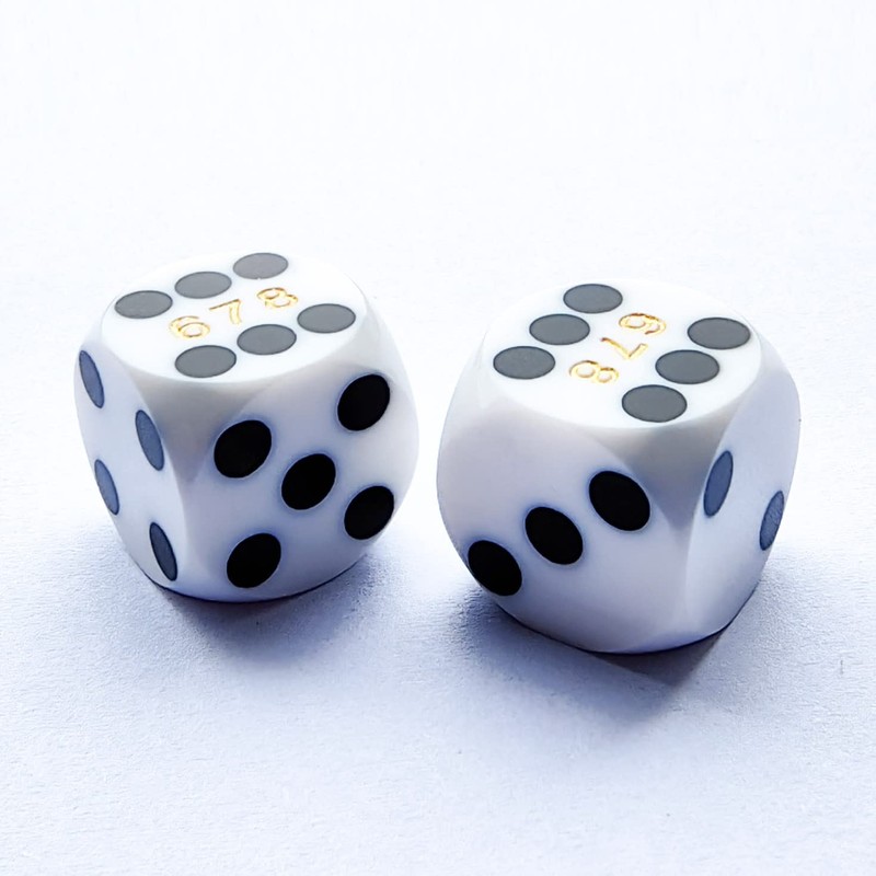- Set of 2 precision dice with dots. Precision cut dice with rounded corners for the most accurate rolling. This is Solid White Set
