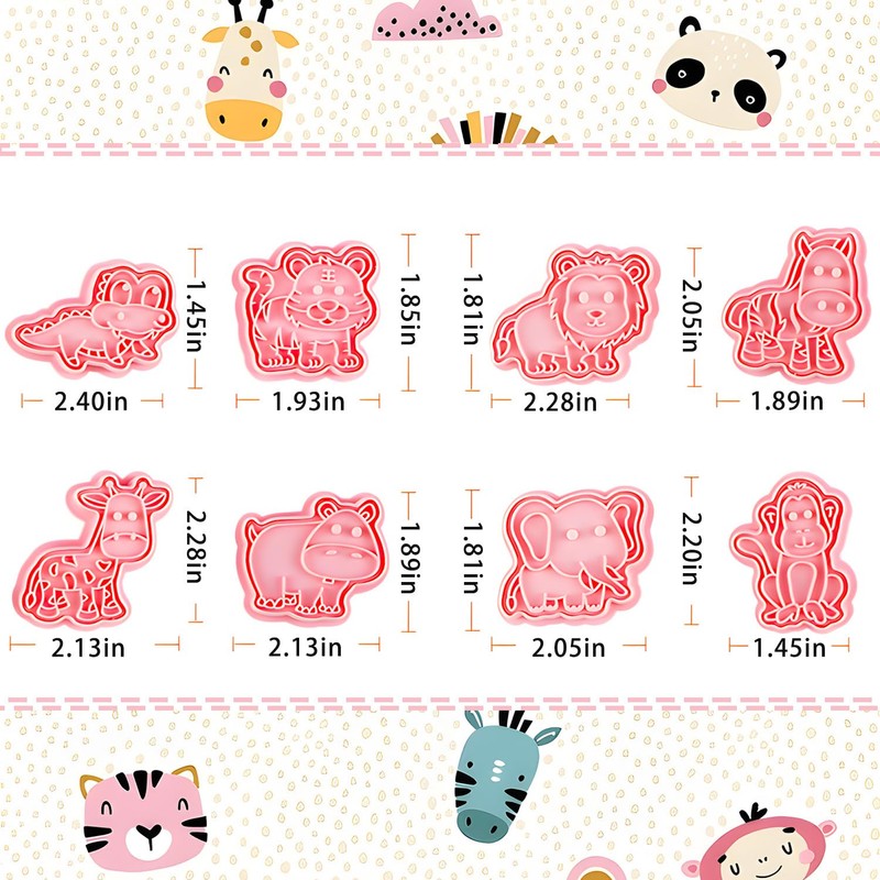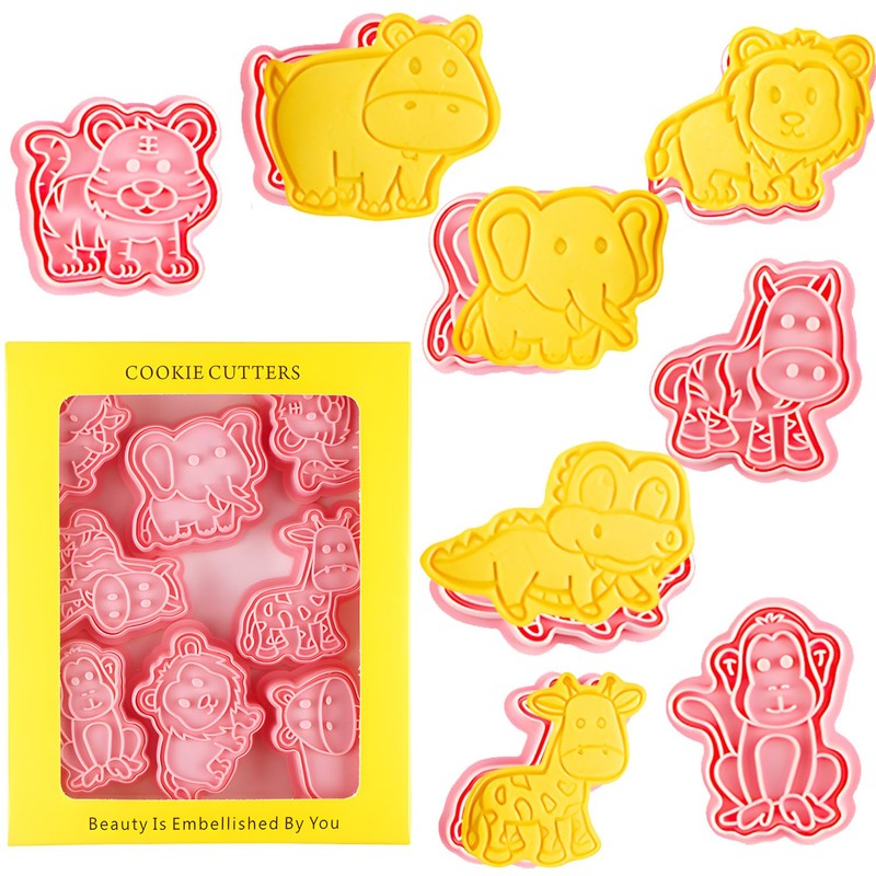 - 【Variety of Shapes】Animal Cookie cutter set includes 8 pieces different shapes for your choice, Lion; Giraffe; Hippo; Elephant; Crocodile, Zebra, Tiger and Monkey. Different shapes will give you different surprise, let you make tasty and funny Christmas holiday treats.