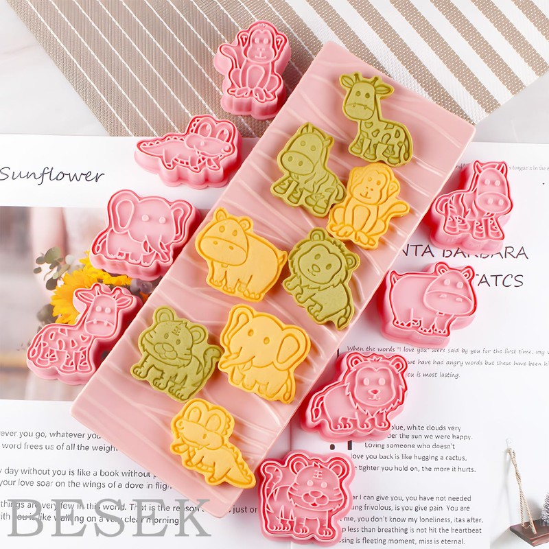 BESEK Animal Cookie Cutters for Kids: Safari Zoo Animals 8 PCS Cookie Cutters Set with Lion, Giraffe, Hippo, Elephant, Crocodile, Zebra, Tiger, Monkey etc. (Gift Box)