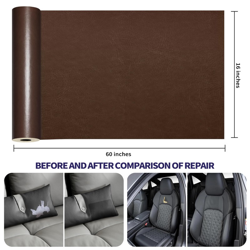 - The size of the large leather repair tape is 60x16 inches,large enough to repair a large damaged area. You can cut any size and pattern as needed. Leather thickness: 0.8mm,moderate thickness,very suitable for patching. The super-strong adhesive makes the leather patch firmly adhere to the repair surface.