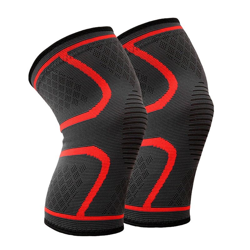 BESKEY Knee Support (Pair) Anti Slip Knee Brace Elastic Breathable Knee Compression Sleeve Help Joint Pain Relief for Arthritic Sufferer and Recovery from Injuries Fit for Sports (L, Red)