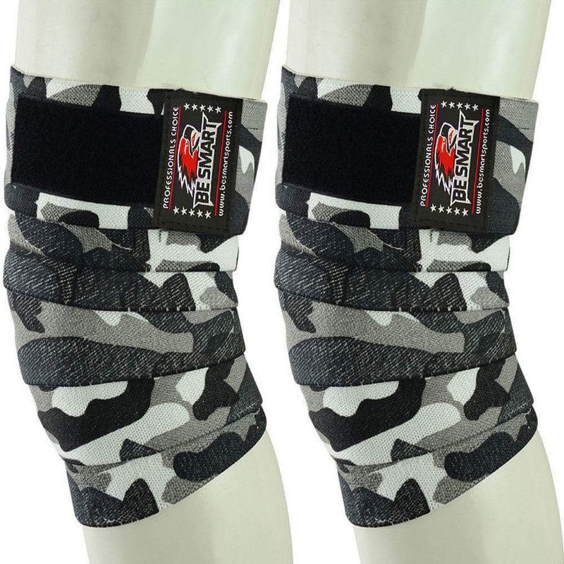 BeSmart Knee Wraps Wrist Wraps Bar Straps for Weight Lifting Body Building Gym Training Support Leg Wrist Straps R (Gray Camo, One Size) Set.