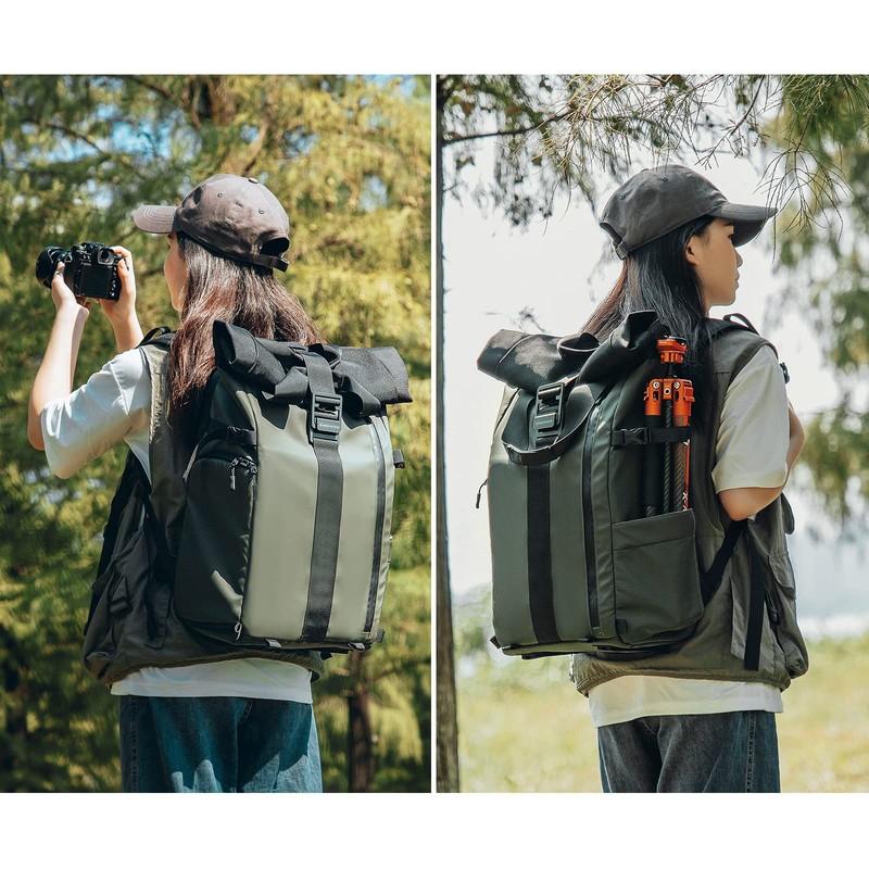 - Large Capacity and Practical Pockets - Camera Backpack for Photographer big enought for two cameras and few lens,and for DJI Mini 2 Pro, Air 2S Drone, Mavic Mini 2/Air 2. Exteral size without rolltop: 48*31*17cm/18.9*12.2*6.7inch; camera compartment: 29*14*29cm/11.4*5.5*11.4 inch. Side tripod holder and many useful mesh interior pockets and top net pockets for your camera gears.