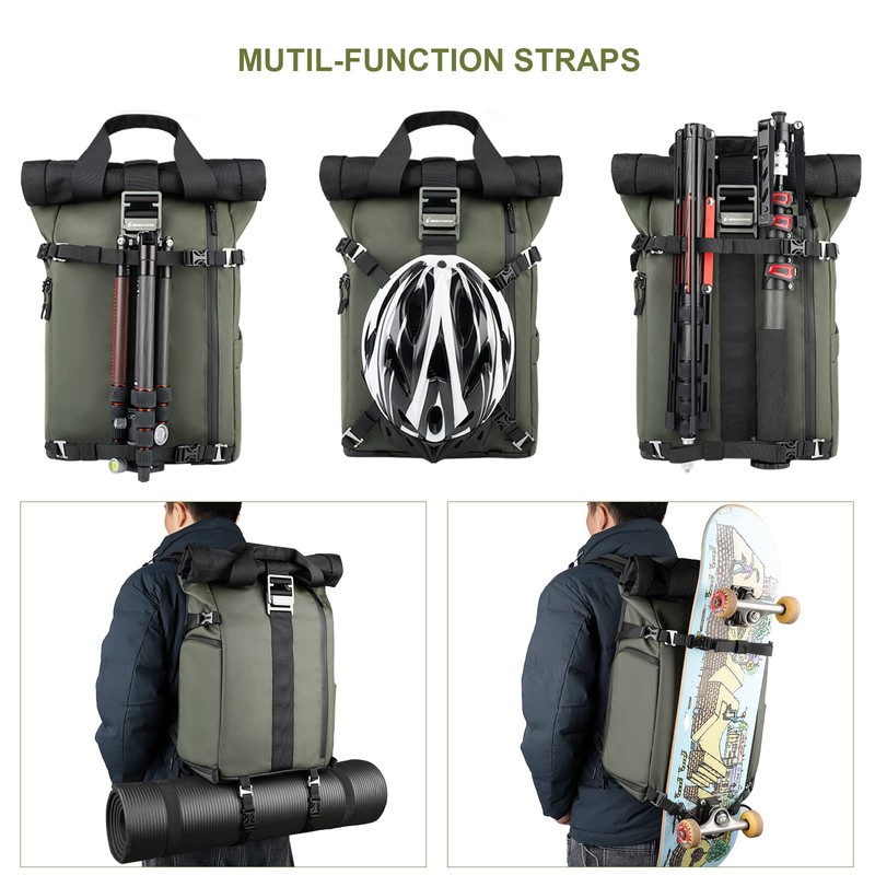 - Expandable Roll Top - Spacious rolltop compartment stores your sweater,jacket some books or other small devices/equipment you might need. The rolltop closed by a zipper. Padded adjustable shoulder strap 2.95'' width and ergonomics padded and breathable back comfortable carrying system.