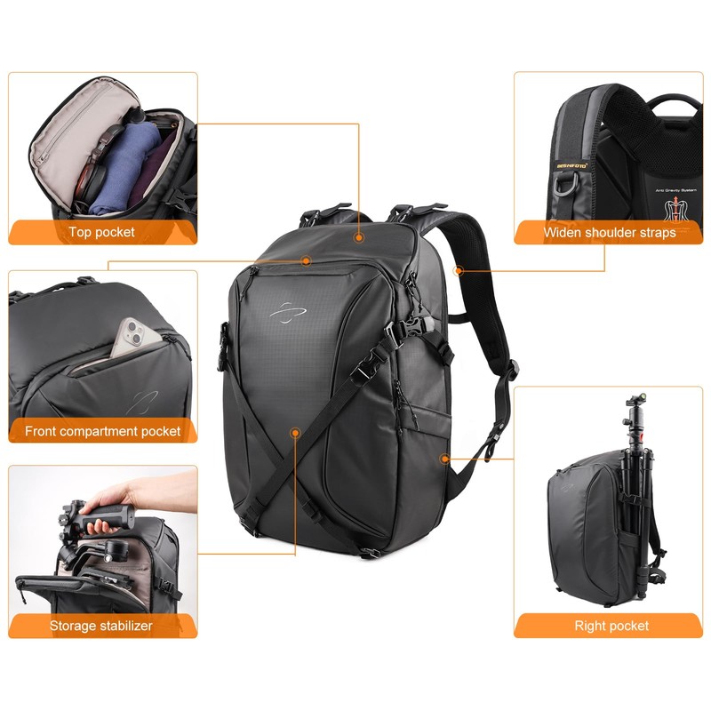 - Anti Gravity System - This professional camera backpack with unique design on back, which will reduce 30% the sense of weight when you walk.The suspension system and the elastic strip were tested and upgraded for years.