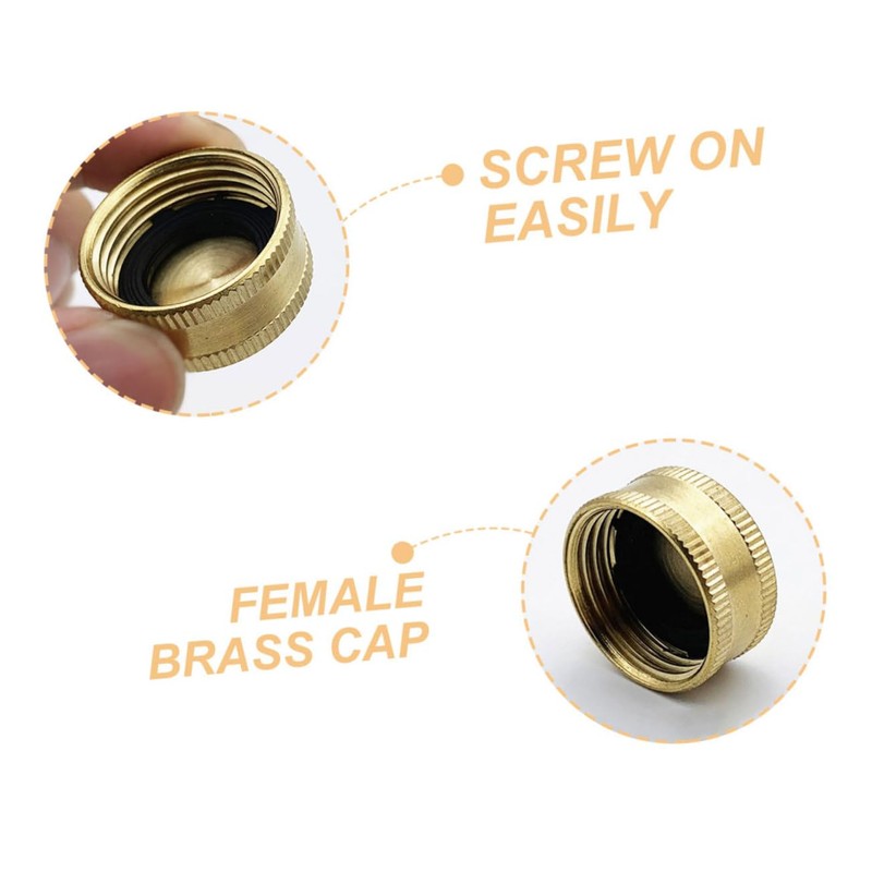 - Garden hose connector stopper:female brass end cap for standard 3/4 inch garden fittings easy to use, just tightening by hand, screw on easily,end cap for garden hose