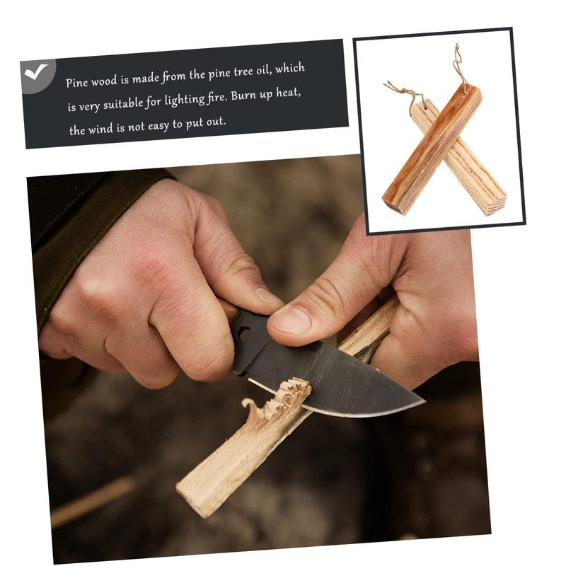 - Wooden fire starter: large pine strips, more fever, can burn more time. with lanyard, convenient suspension, save space.