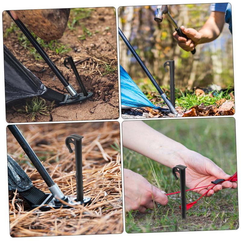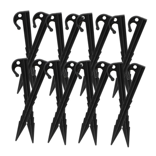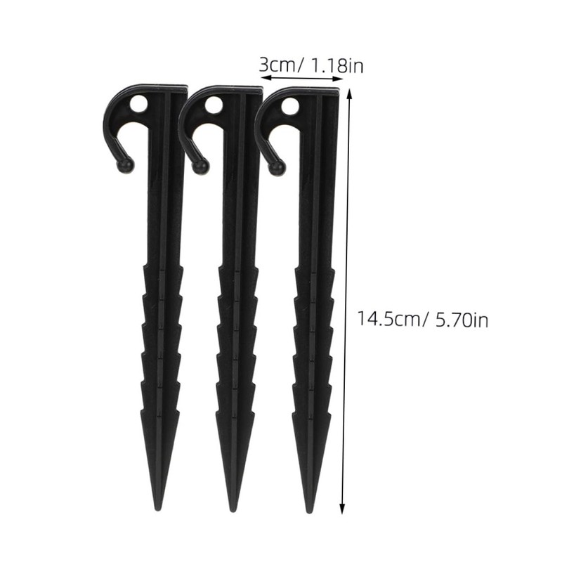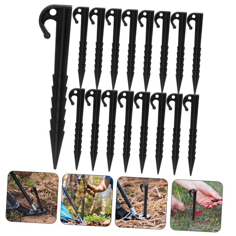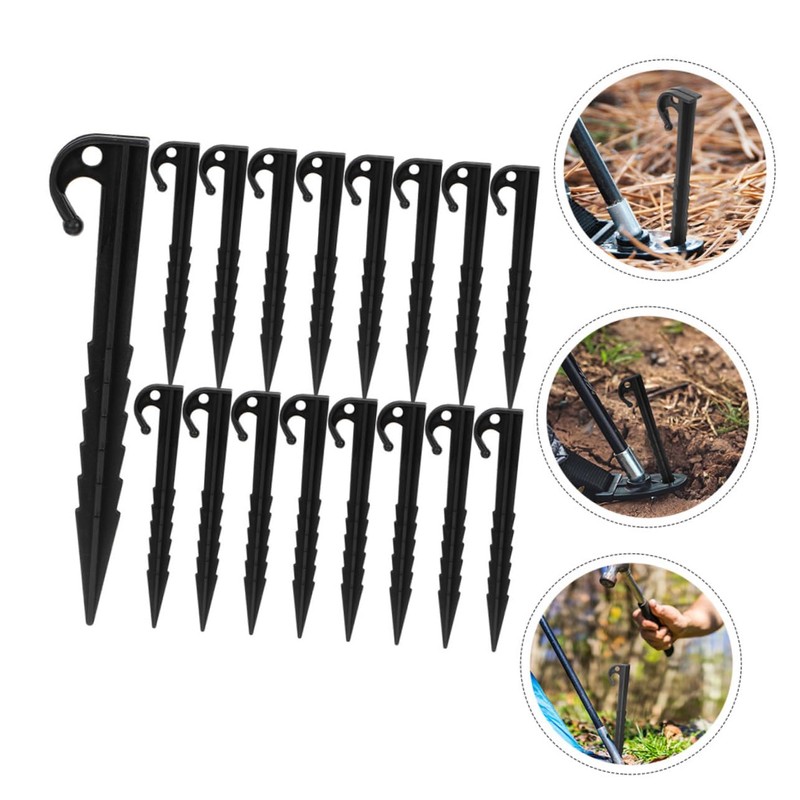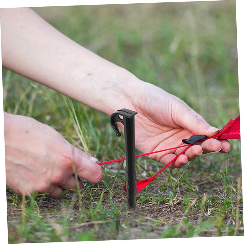 The tent stakes are made of plastic material, and are for holding camping tents. The tent stakes are strong and durable and are designed to provide support. The stake can be fixed into the ground easily. It is suitable for outdoor use, tent, awning, canopy, etc.