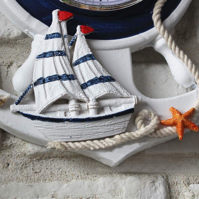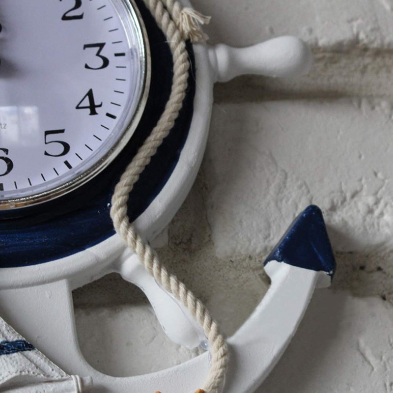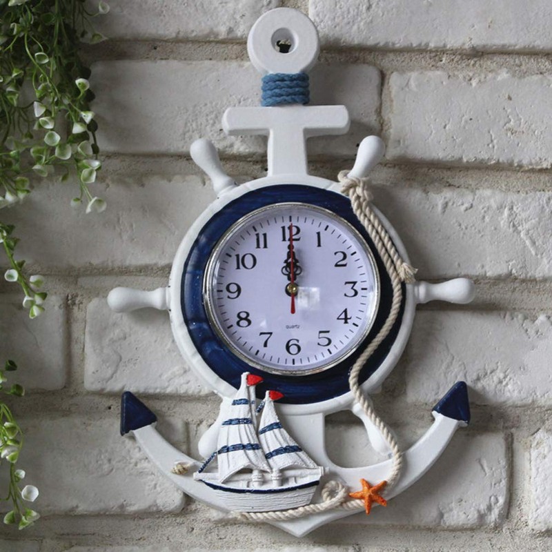 BESPORTBLE Anchor Clock Mediterranean Style Wall Clock Beach Sea Theme Nautical Ship Wheel Decor Wall Hanging Decoration