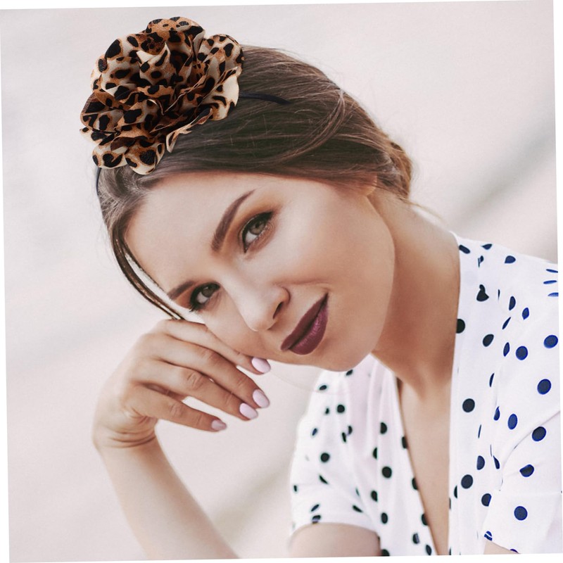 BESPORTBLE Leopard Print Flower Headband for Women Stylish Floral Hair Accessory Non-Slip Elastic Band for Parties Costumes and Everyday Wear