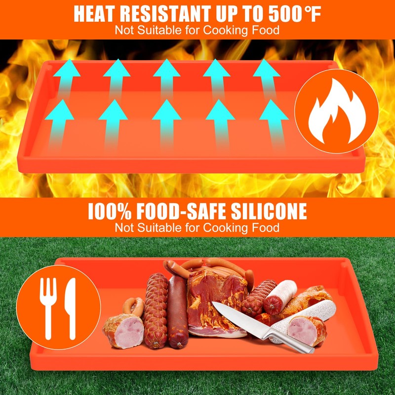 - FOOD GRADE SILICONE: The griddle mat for blackstone grill is made of 100% high-quality food-grade silicone, thick, durable, soft, safe and reliable, you can use it with confidence, it will not heat or transfer heat, and can withstand up to 500H.