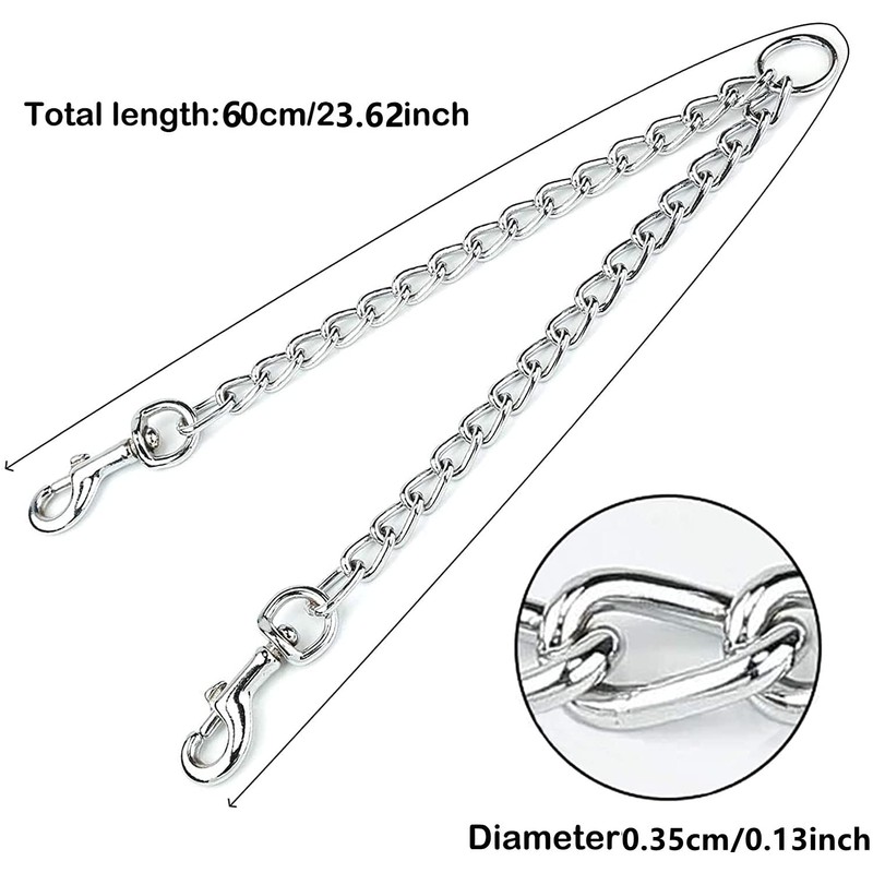 Bessy shop Double Dogs Lead, 60cm Metal Double Dog Leash 2 Way No Tangle Dog Chain Chew Proof Tangle Free Dual Dog Leash Extension Splitter Chain Lead 360° Swivel Clip for 2 Dogs