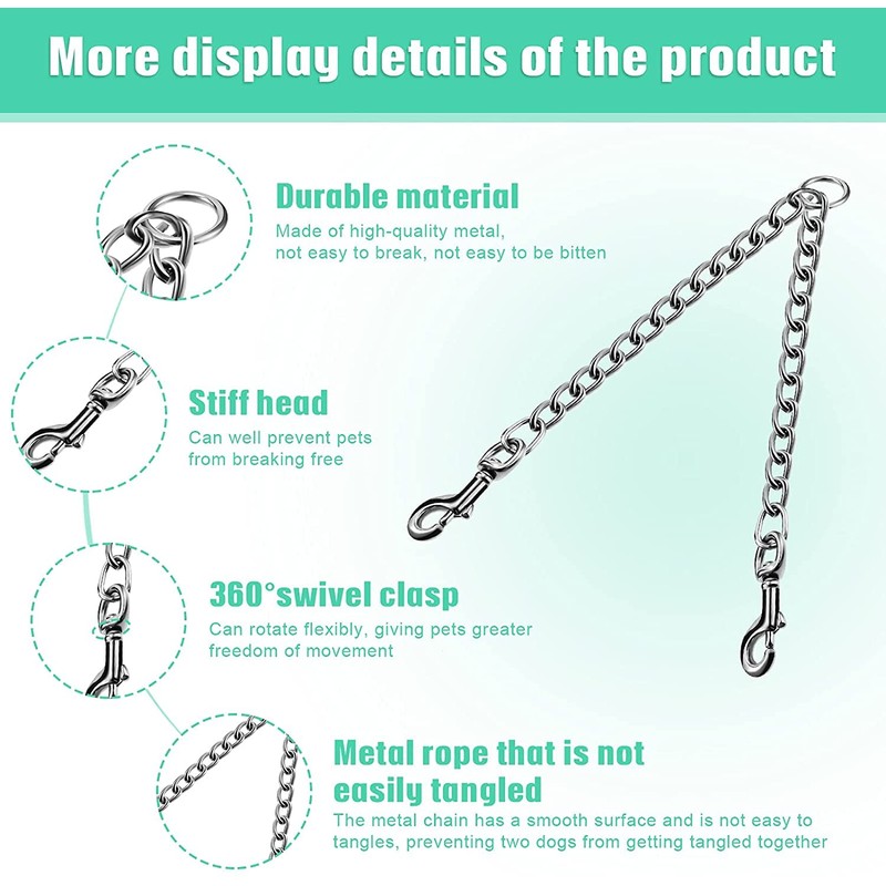 - Material: Dog leash splitter made of chrome plating alloy chain, Multi-layer plating, will not tarnish, against rust.works with all dog collars.