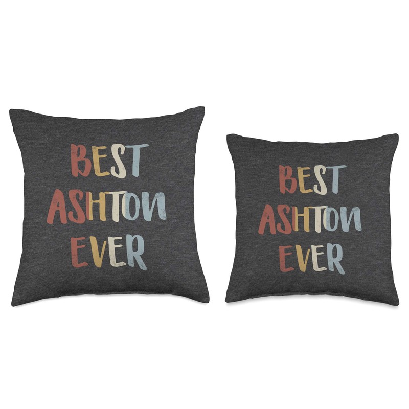 Best Ashton Ever Retro Vintage Name Gift Dark Heather Gray Throw Pillow