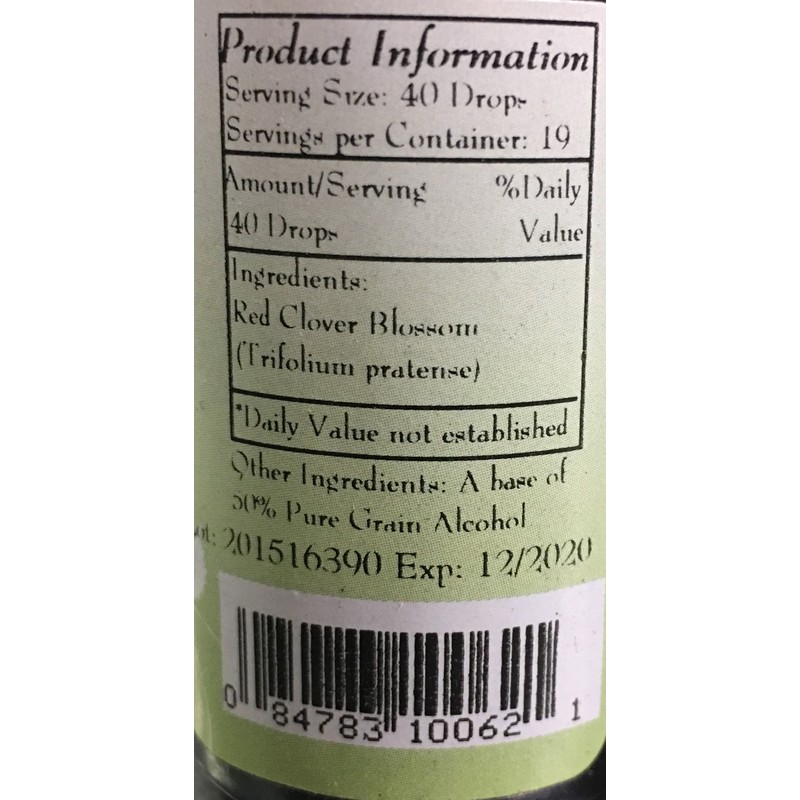 Best Botanicals Red Clover Blossom Extract 1 oz. 50% pure grain alcohol.
