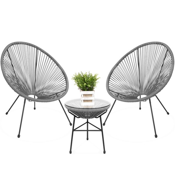 Best Choice Products 3-Piece Outdoor Acapulco All-Weather Patio Conversation Bistro Set w/Plastic Rope, Glass Top Table and 2 Chairs - Gray