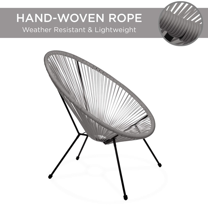 - LIGHTWEIGHT AND DURABLE: Crafted with handwoven, weather-resistant plastic rope over a powder-coated steel frame for long-lasting use, and a lightweight design makes it easy to move around