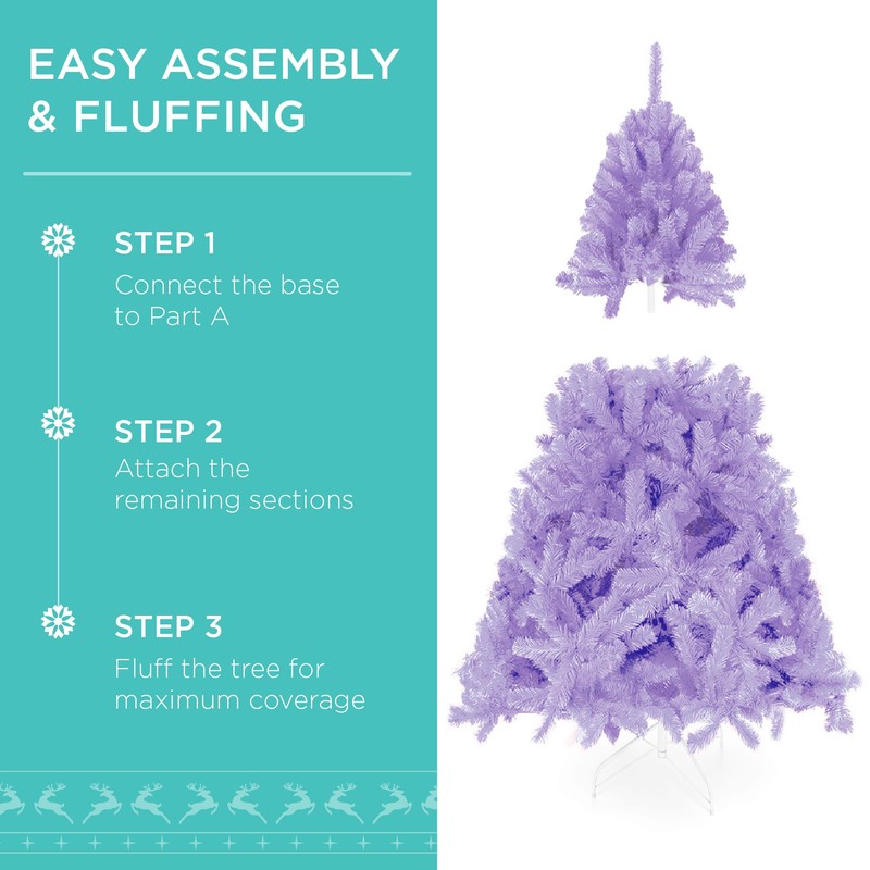 Best Choice Products 4.5ft Pre-Lit Lavender Christmas Tree, Full Artificial Holiday Decoration w/ 362 Branch Tips, 175 Lights, Foldable Base