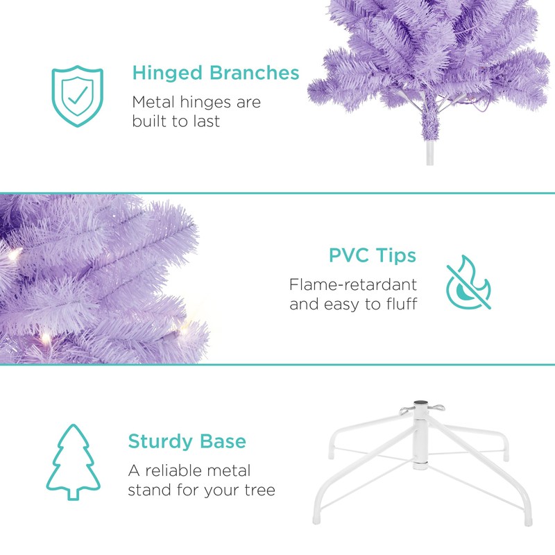 - NEW COLOR FOR THE HOLIDAY: Guaranteed to be an immediate eye-catcher in any setting, hundreds of pre-strung lights and a distinct lavender color breaks the mold of traditional trees; Light Count (4.5ft/6ft/7.5ft/9ft): 175/250/550/900