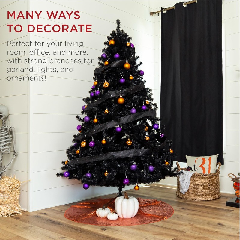 Best Choice Products 6ft Artificial Full Black Christmas Tree Seasonal Holiday Decoration for Home, Office, Party Decoration w/ 947 PVC Branch Tips, Metal Hinges, Foldable Base