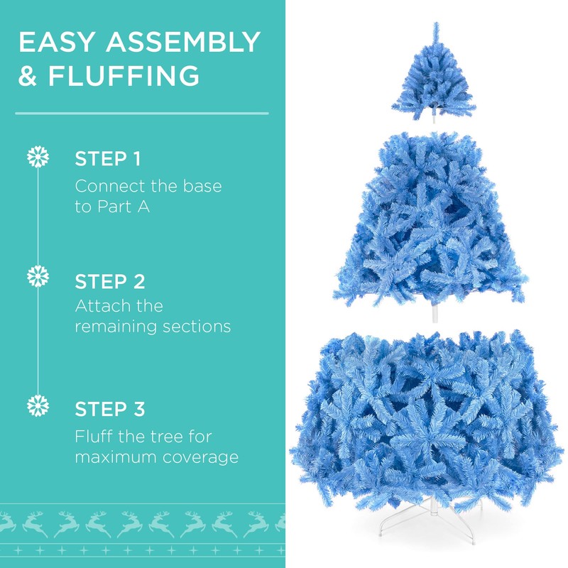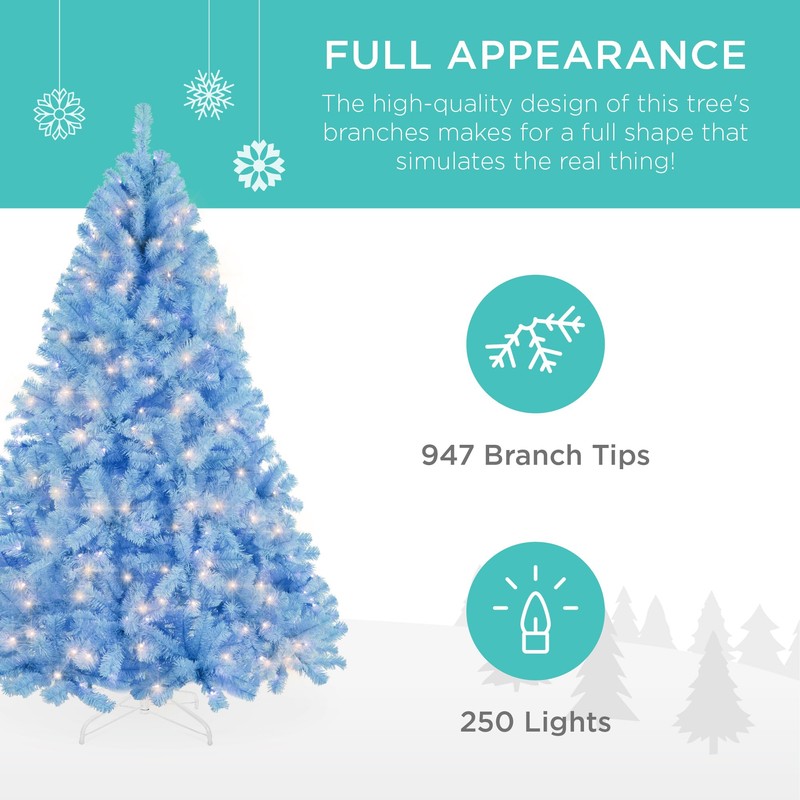 - NEW COLOR FOR THE HOLIDAY: Guaranteed to be an immediate eye-catcher in any setting, hundreds of pre-strung lights and a distinct baby blue color breaks the mold of traditional trees; Light Count (4.5ft/6ft/7.5ft/9ft): 175/250/550/900
