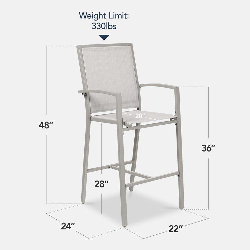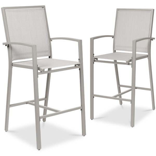 Best Choice Products Outdoor Bar Stools Set of 2, Bar Height, Patio Furniture, All Weather Mesh Design w/Armrest - Gray/Gray