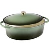 Best Choice Products Oval 7.5 Quart Enamel Cast-Iron Dutch Oven, Heavy-Duty Pre-Seasoned for Baking, Cooking w/Side Handles – Deep Olive Green