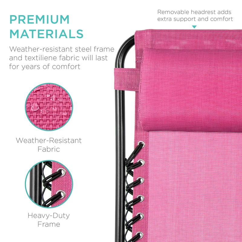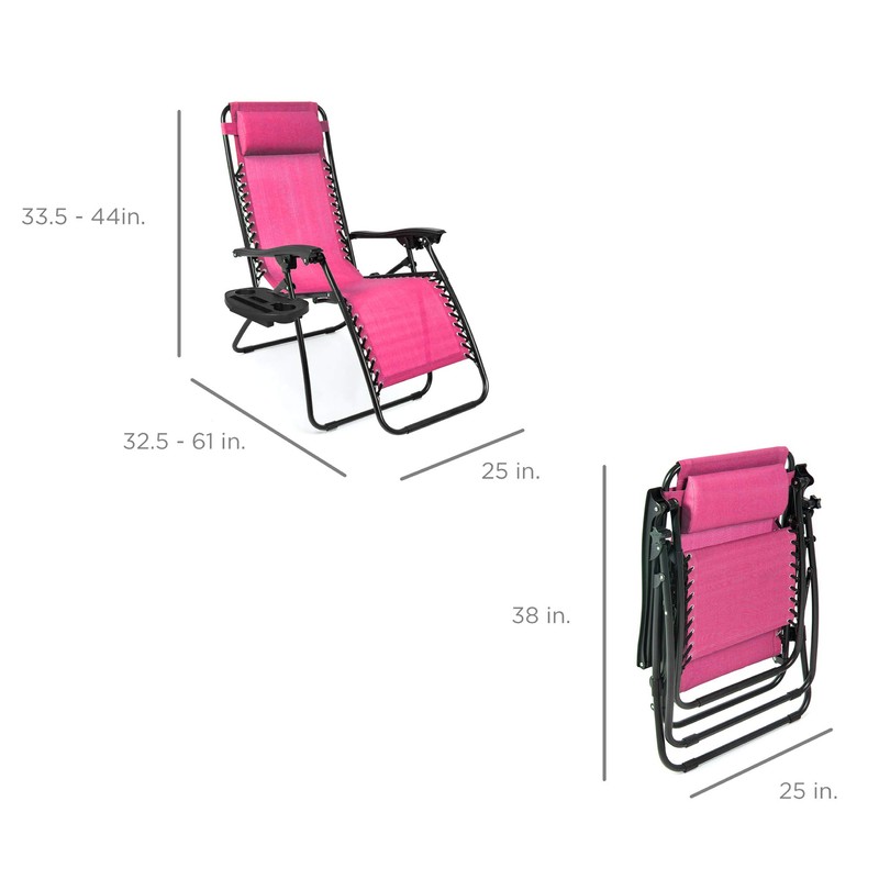 Best Choice Products Set of 2 Adjustable Steel Mesh Zero Gravity Lounge Chair Recliners w/Pillows and Cup Holder Trays - Pink