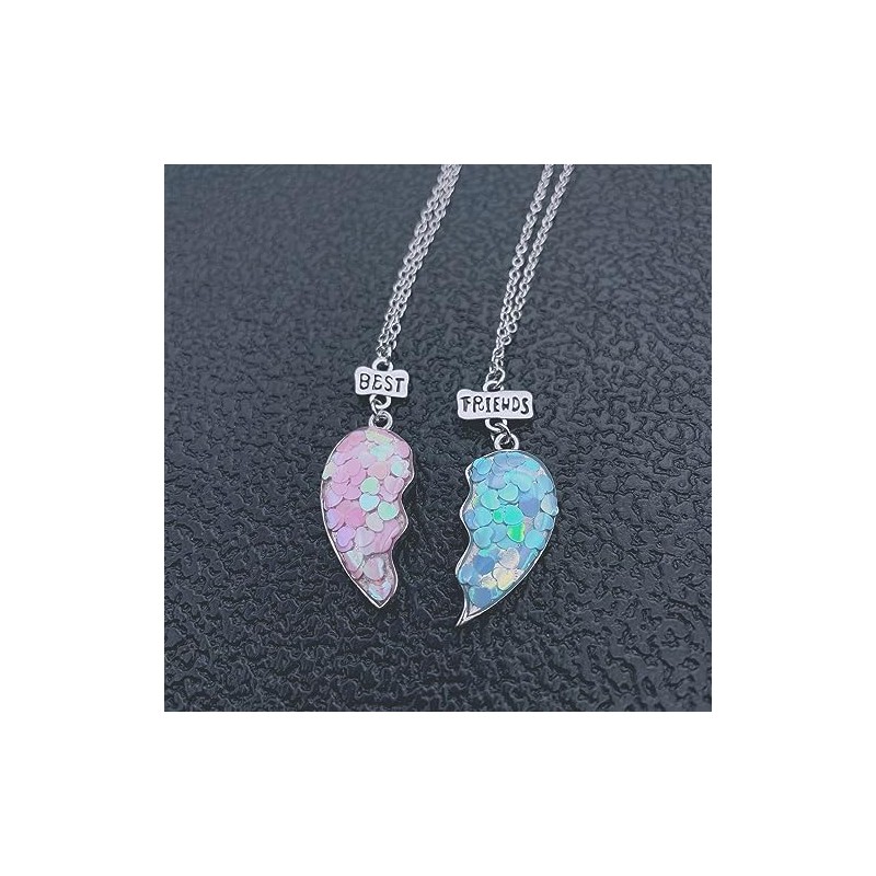 It meant a lot to your best friends to have a matching heart necklace, whenever your best friend miss you during the day, she just look at the bestie necklace and think of you smile