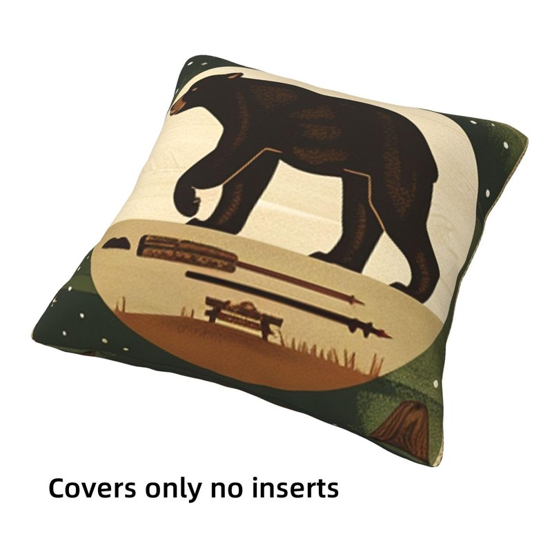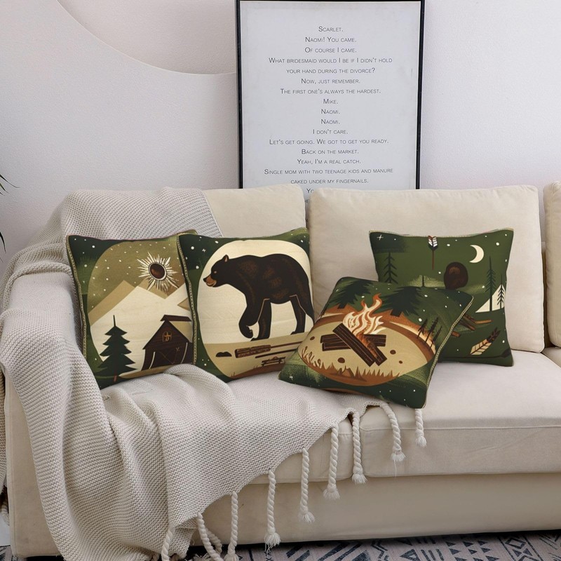 Best Gifts Set of 4 Throw Pillow Cover Bear Adventure Mountains Arrow Campfire Outdoor Forest Trees Camping Travel Cushion Case Double-Sided Plush Material Decorative Pillowcase 18"X18" (Green 1)