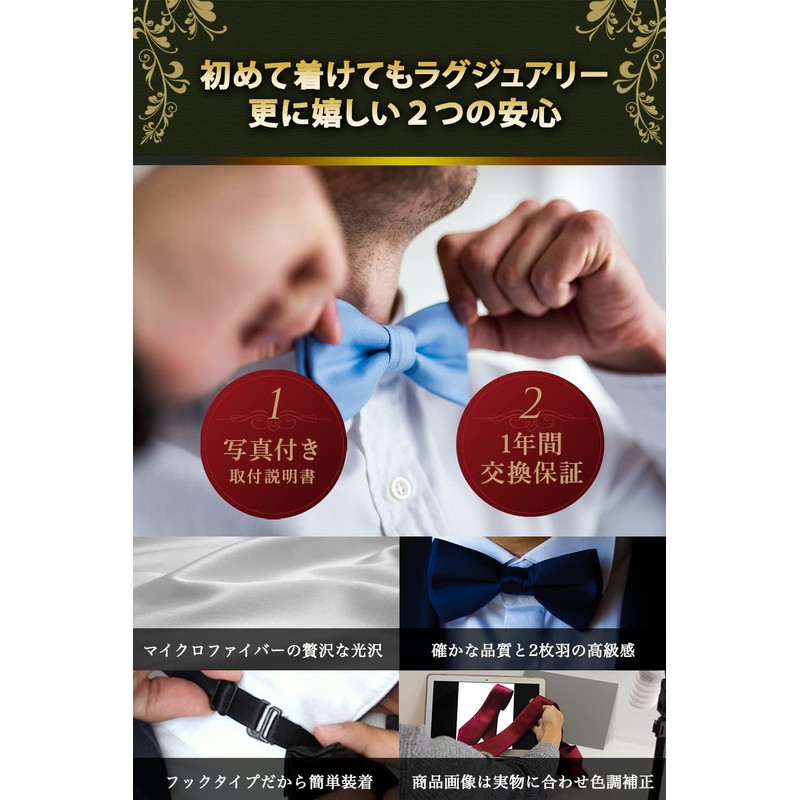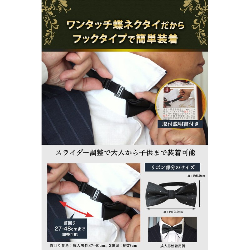 - The bow tie cannot be tied properly in one time if you try to tie it yourself. This is a one-touch bow tie with a butterfly part that is sewn with thread and secured with a hook. Even those who are not familiar with the ease of installation
