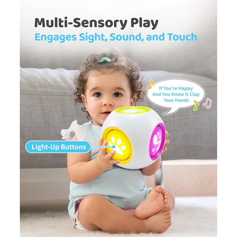 - AN INTERACTIVE CUBE - Learning toy with a different function button on all 6 sides; Learn alphabets, numbers, colors, music, animal sounds and musical instruments.