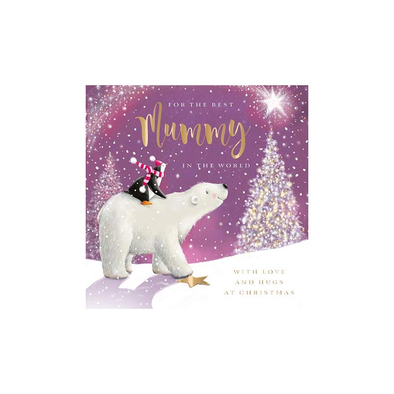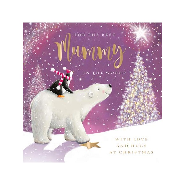 - 🎁 FESTIVE DESIGN: An artistic card featuring an illustrated design of a penguin and polar bear looking towards a bright star, with the message "For The Best Mummy In The World With Love and Hugs at Christmas" on the front. This card is finished with embellished details and supplied with a coordinating envelope.